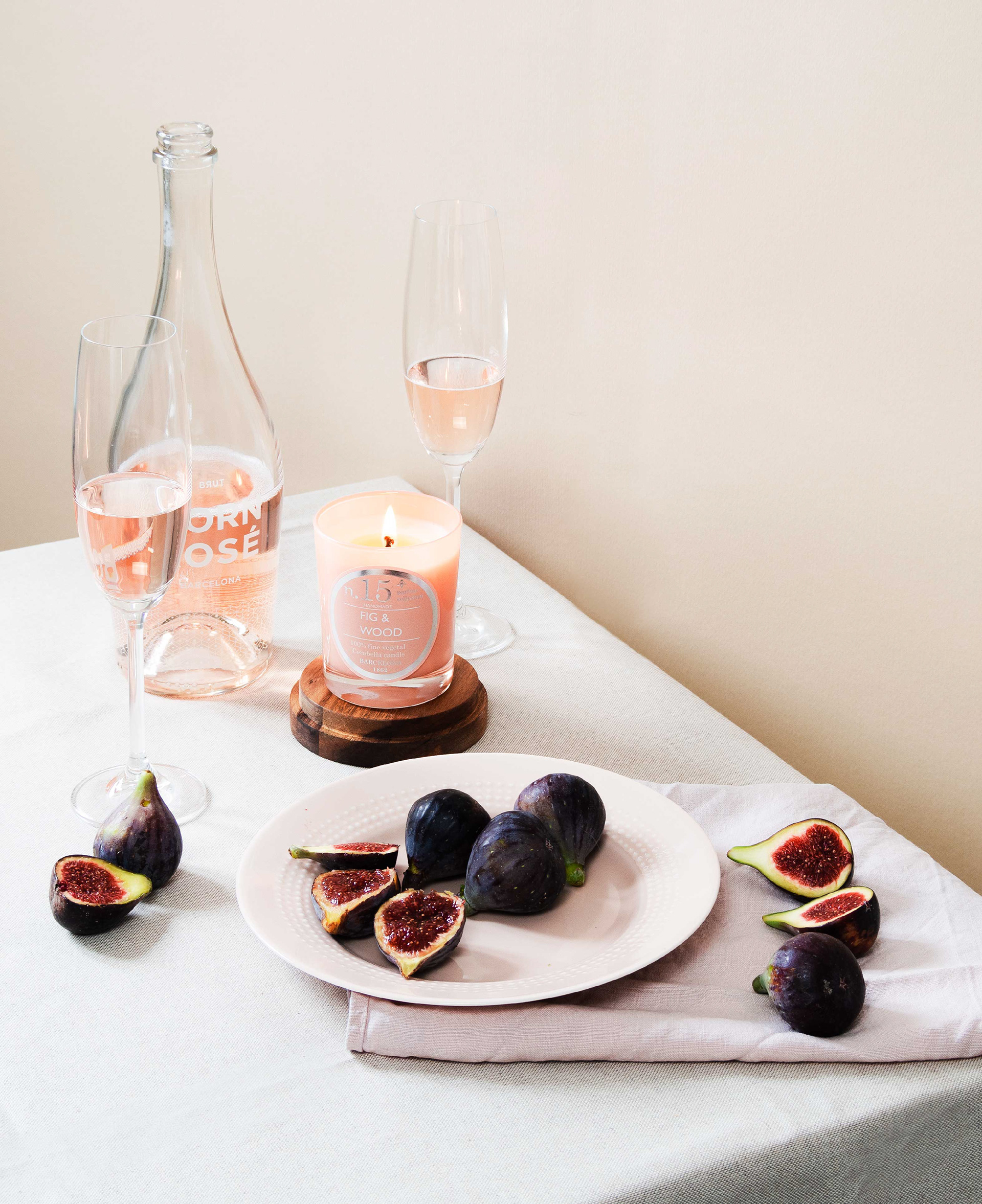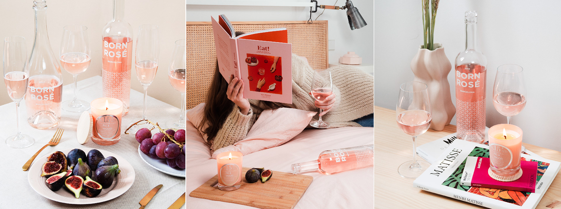 Born Rosé Barcelona release an aromatic candle “Fig&wood” for enjoying moments like drinking wine and smelling the candle essence while reading a book or having a cozy vibe at home. Visual concept based in table talks, Deco & Interior design and homey moments. Art direction, Set Design & Photography: Flor Blázquez.