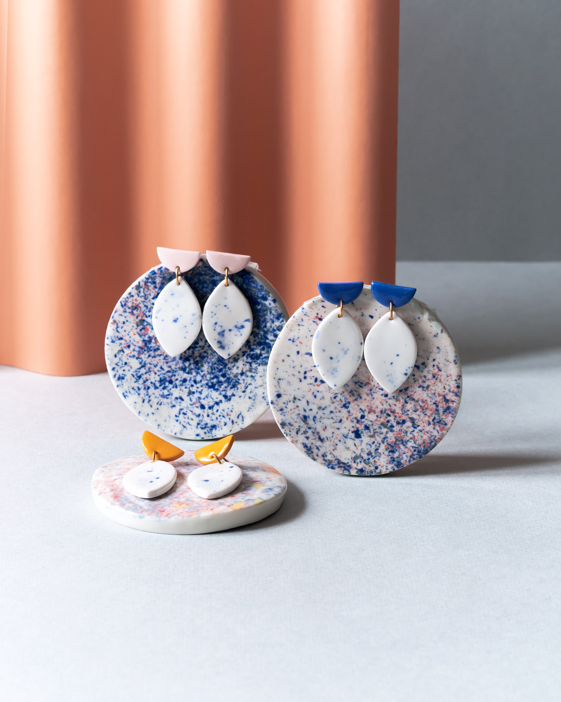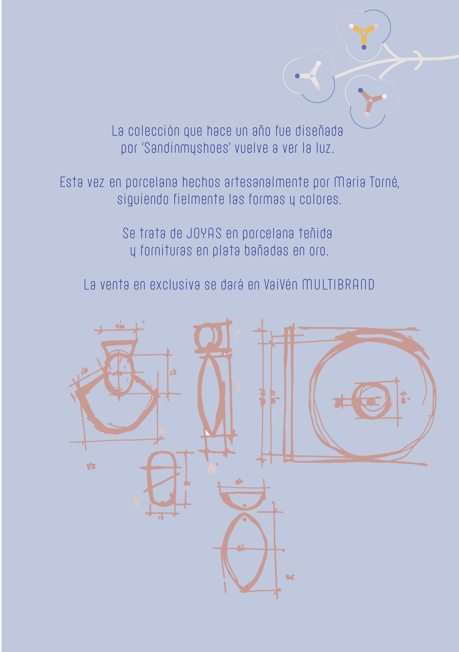 Las piezas que se diseñaron en arcilla polimérica hace un año para Manolita la Sencilla, nuevamente se lanza el rediseño y reproducción de pendientes en porcelana teñida y esmaltada. La cápsula El número 3 consiste en una sinergia de tres partes como el principio, el medio y el fin: diseño de producto, extrayendo los colores y las formas de la cápsula anterior, producción hecha a mano y venta de producto en exclusiva. Esta sinergia viene dada por María Torné, Vai Vén Multibrand y por mí: Diseño y control de color y acabados, desarrollo del diseño gráfico y fotografía de la cápsula para que esté integrada en la identidad de las tres marcas. El producto se comercializa en Vai Vén Multibrand. All images & content © December, 2019